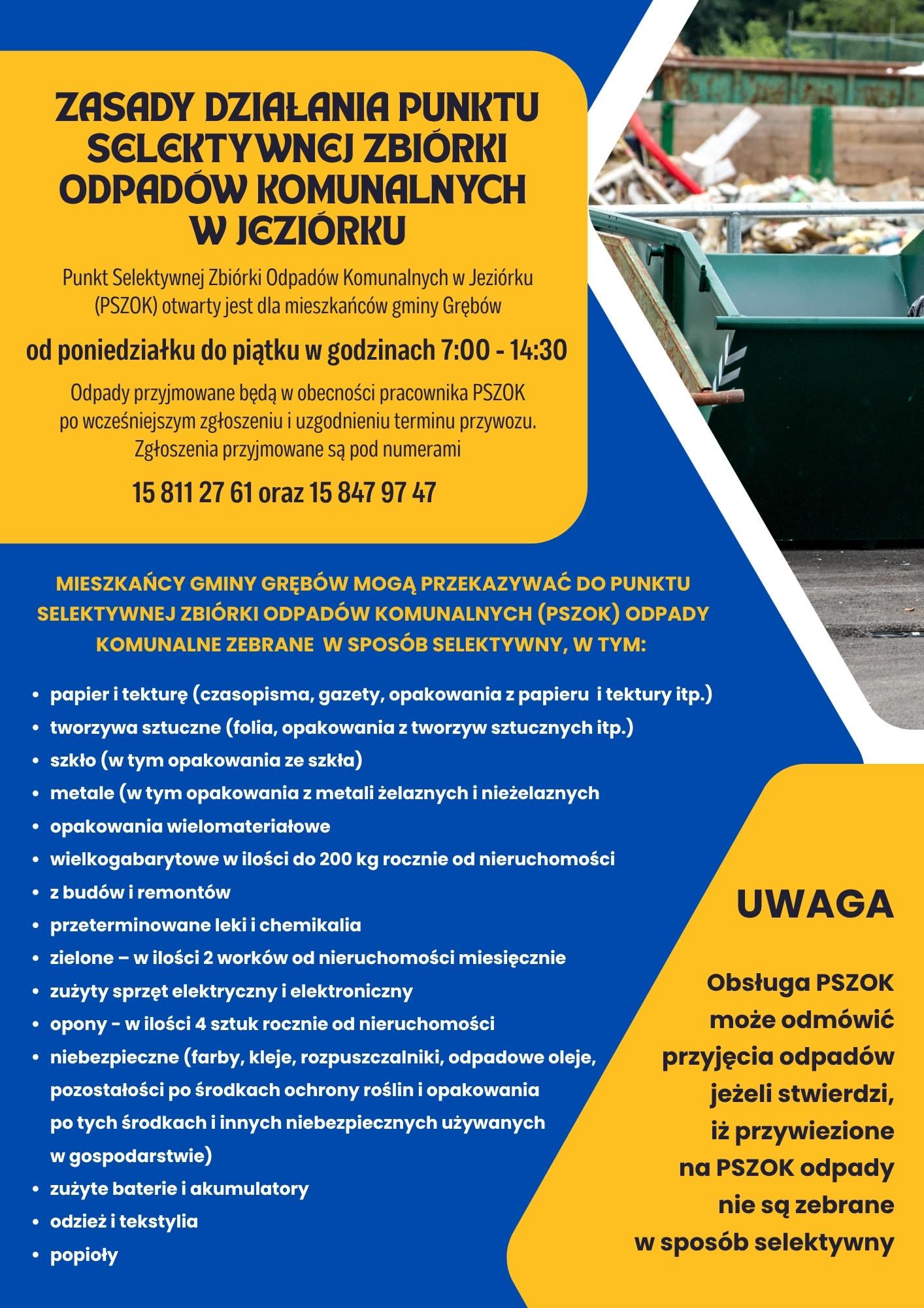 22-04-2026Zasady działania Punktu Selektywnej Zbiórki Odpadów Komunalnych w Jeziórku