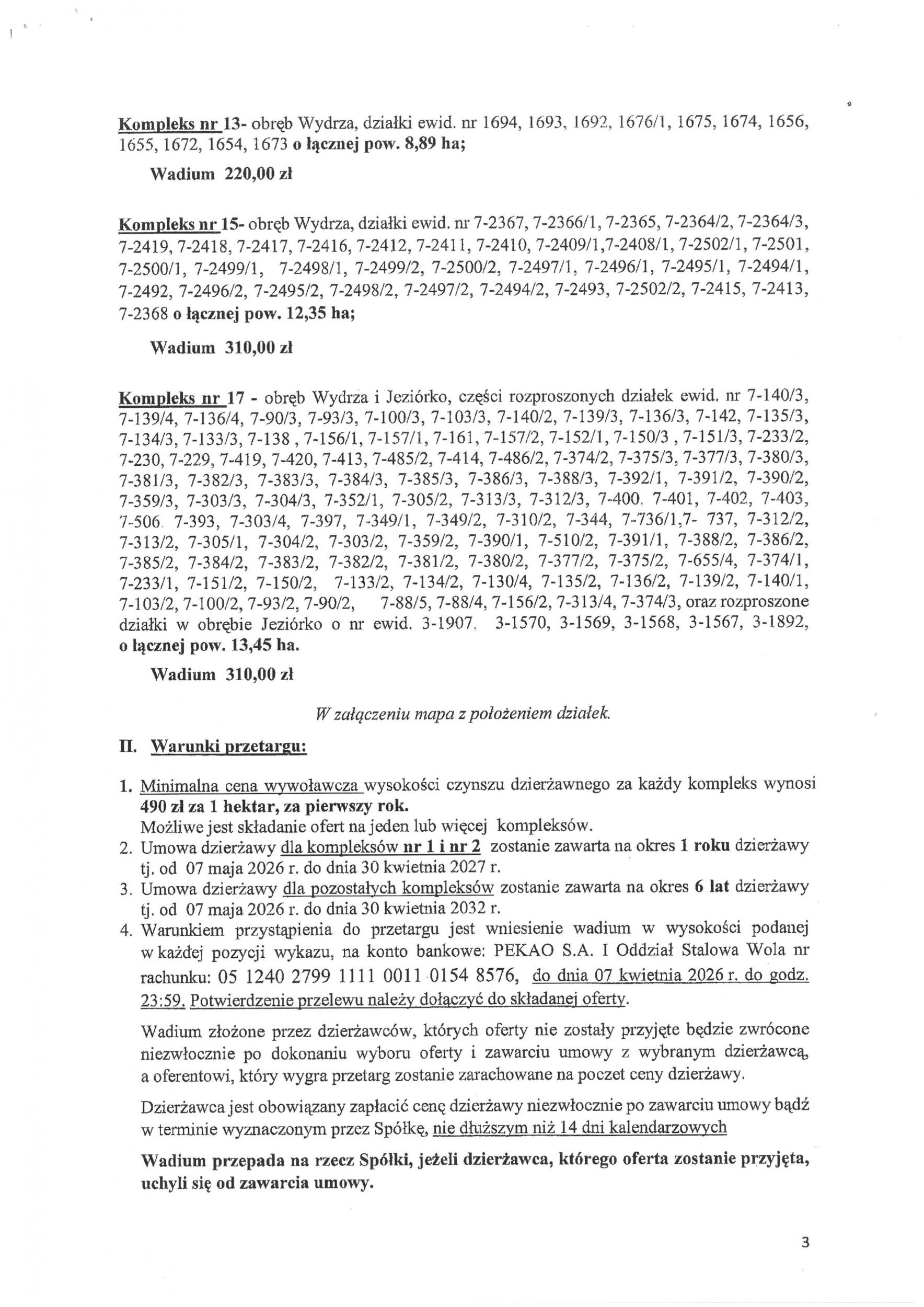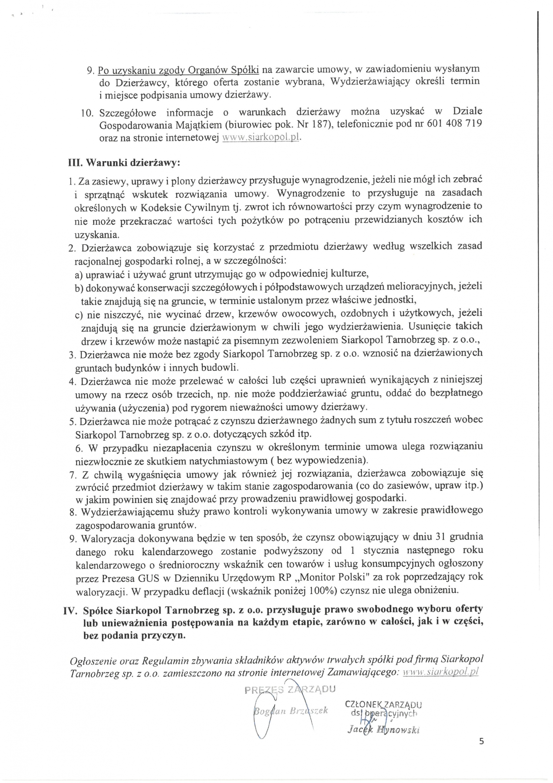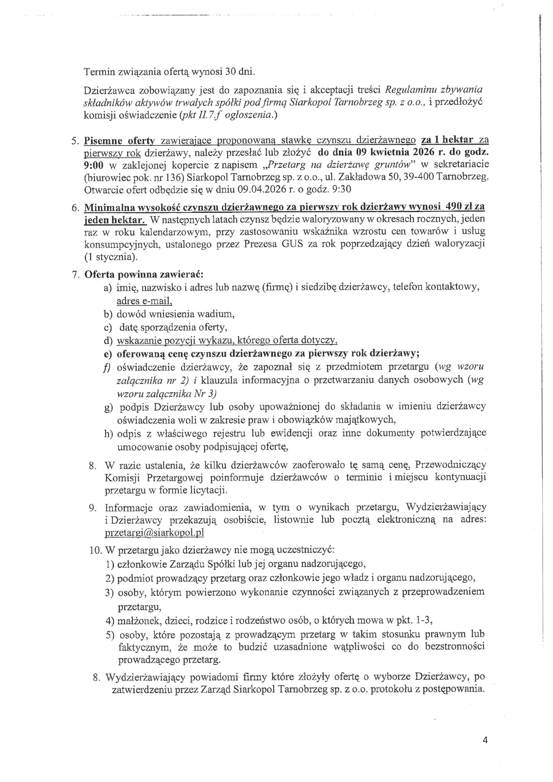 Przetarg nieograniczony na dzierżawę gruntów rolnych